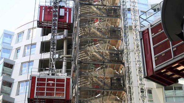 Die Auslegung der internen Komponenten gewährleistet, dass die Treppenpodeste mit den Podesthöhen des temporären Bauwerks übereinstimmen.